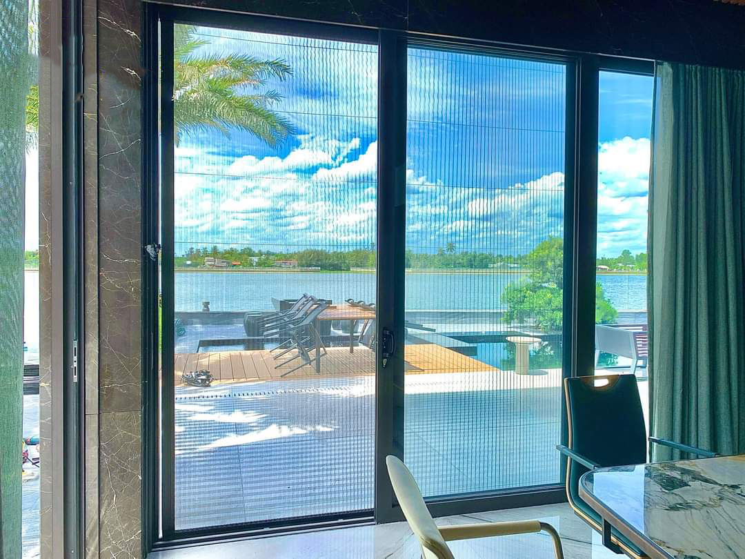 Tại các không gian kinh doanh như quán café, nhà hàng hay resort, cửa chống muỗi dạng xếp vừa đảm bảo yếu tố thẩm mỹ vừa giúp tạo môi trường sạch sẽ, thoáng mát cho khách hàng. Nhờ thiết kế trong suốt, cửa không cản tầm nhìn và vẫn giữ được vẻ đẹp cảnh quan bên ngoài. Đặc biệt trong các khu vực mở như sân vườn, cửa dạng xếp còn giúp hạn chế gió mạnh và côn trùng bay vào bên trong.