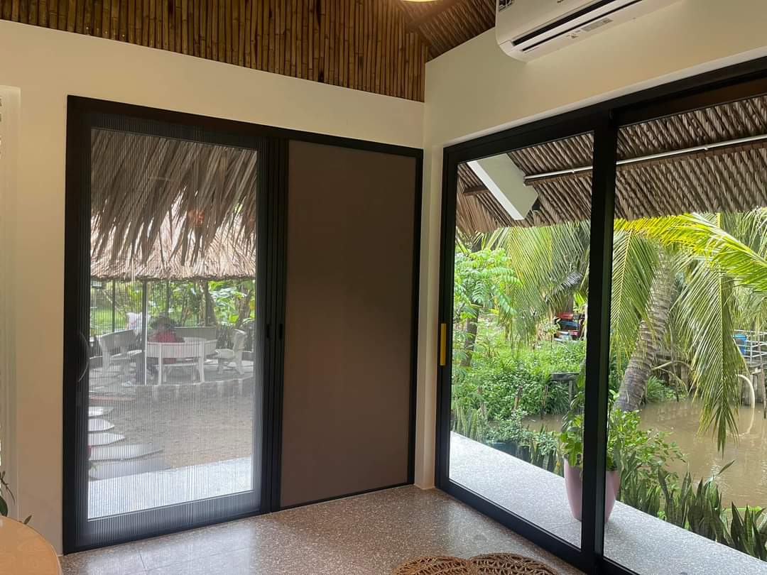 - Khung và phụ kiện: Khung lưới thường bằng nhôm hoặc uPVC chịu lực tốt, riêng biệt thự có thể dùng khung gỗ cao cấp (nếu thiết kế đồng bộ nội thất). Bản lề, ray trượt, tay cầm nên chọn chất liệu tốt (inox, nhựa ABS chất lượng) để vận hành bền bỉ. Chất liệu tốt quyết định tuổi thọ lưới chống muỗi ban công, thường từ 5-10 năm tùy môi trường.